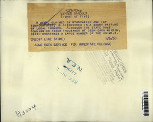 1950 Press Photo Deer Found Dead in Snow by Farmers