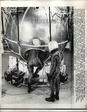 1958 Press Photo Minneapolis MN Navy Cmdr MD Ross, ML Lewis for balloon altitude