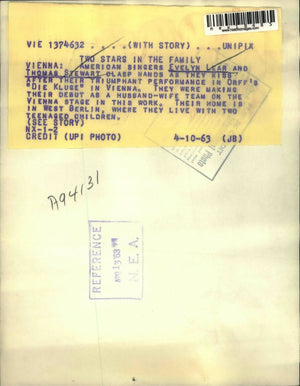 1963 Press Photo singers Evelyn Lear and Thomas Stewart do Orff's Die Kluge