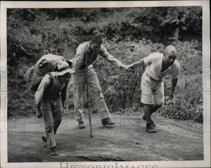1947 Press Photo Yotaro Kazama, Cpl. Harold Crasfield Climb Mount Fuji, Japan