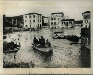 1937 Press Photo Residents in Boats After River Tiber Flooding in Rome, Italy