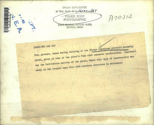 Construction of the Fisher Cleveland Aircraft Assembly plant, fabrication section of the plant used the longest flat slab concrete structure in existence.