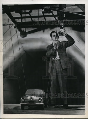 1946 Press Photo Ann Arbor Mich Paul McKee Univ of Mich wind tunnel test