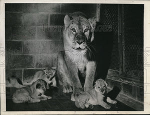 1945 Press Photo Milwaukee Wic Queen the zoo lion & her three cubs