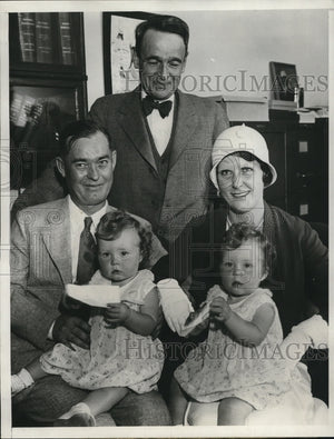 1932 Press Photo Mr and Mrs James Mann adopt orphan twins Beatrice & Mary McFate