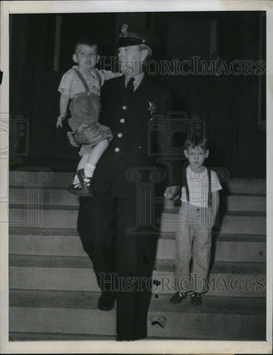1948 Press Photo Chicago policeman John Lowery with Fred & Mark Prevo