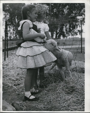 1955 Press Photo Dianah Duflock and Carol Gowman feed lost lamb.