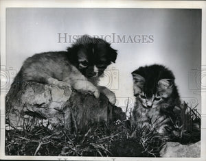 1962 Press Photo Pekingese pup and tiny grey kitten in Ottawa, Canada