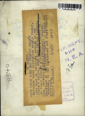 1937 Press Photo Young Children Salute King Victor Emmanuel and Achillesstarace