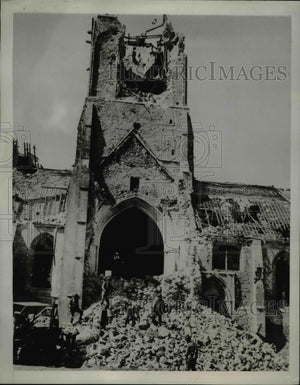 1944 Press Photo St. Jacques de Montebourg Church bombed during World War II