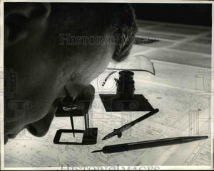 1961 Press Photo draftsman Herbert Pierce makes correction on Hammond Map