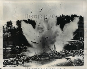 1947 Press Photo Moose River Fall Logs Freed By Dynamite