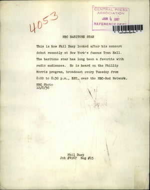 1937 Press Photo Phil Duey Baritone Star