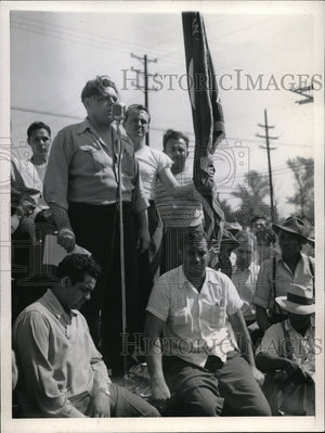1945 Press Photo Robert Wright Union Leader Addresses Strikers