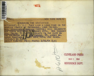 1954 Press Photo Patchigue NY Mrs Georgina Hawkins age 106, son Ralphm Eugene