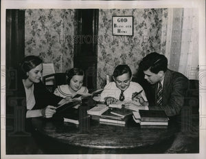 Anna, Sophie & Domnic Opielouski receive private instructions from Richard Merritt, a student of Amherst College. The children are under reform school sentences for refusing to salute the American flag.