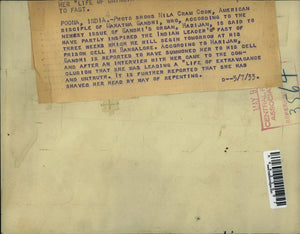 1933 Press Photo Nila Cram Cook, partial inspiration for Ghandi's fast.