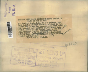 1939 Press Photo Neville Chamberlain British Premier, Lord halifax arrive Paris