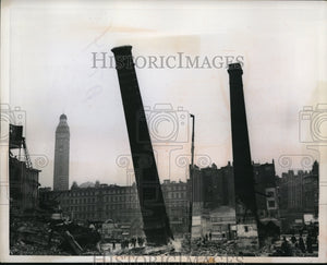 1959 Press Photo London England smokestacks at brewery being demolished