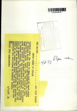 1968 Press Photo Vatican City Rome, Pope Paul VI Easter Eve Services, Catholic