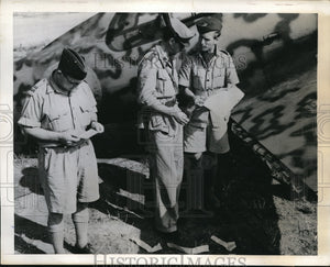 1943 Press Photo R.A.F. officers discuss route at a recently captured airport