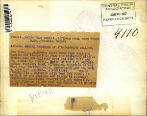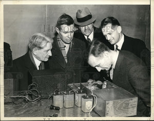 1937 Press Photo Meteorologists Record Stratosphere Balloon Progress at Radio