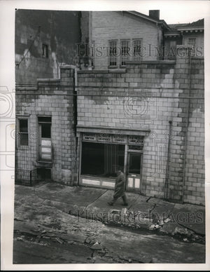 1940 Press Photo Cracked, Damaged Garage Building in Sinking Mine Shenandoah, PA