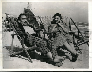 1942 Press Photo Jay Stanckzyk with his wife on the private beach of Versailles