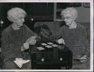 1934 Press Photo Twins Elizabeth Howell & Martha Loucks celebrating their 83rd