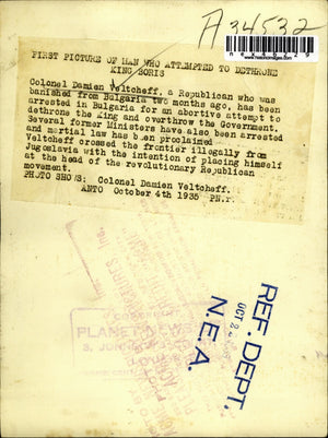 1935 Press Photo Damien Veltcheff Arrested in Bulgaria for Treason