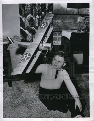1956 Press Photo Cleveland Ohio Phillip Bengo age 8 & model plane
