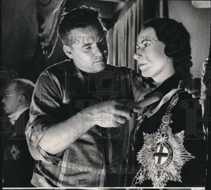 1966 Press Photo Tiberghien brushes royal raiment of Queen Elizabeth II