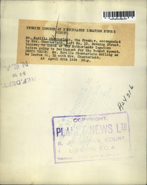 Premier Neville Chamberlain accompanied by Mrs. Chamberlain