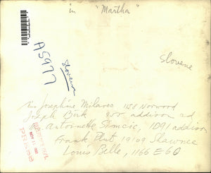 Miss Josephine Milavec 1158 Norwood Joseph Birk 955 Addison Mrs. Antoinette Simcic 1091 Addison Frank Pluto 19109 Shawnee Louis Belle, 1166 EGO in "Martha"