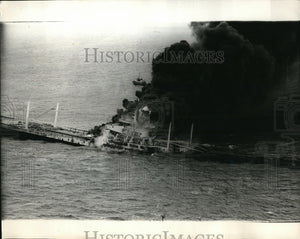 1970 Press Photo Liberian tanks ship Pacific Glory burns & sinks off England