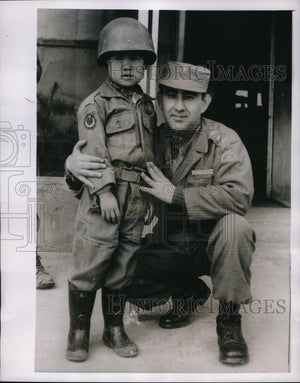 1956 Press Photo Seoul Korea Sgt Ahmed age 7 & soldier Capt Ziya Ozbilen