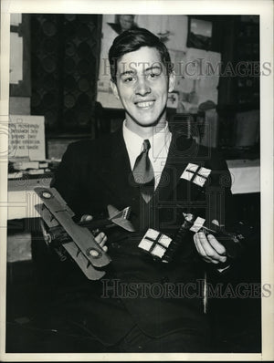 1934 Press Photo Raymond Mettauer age 15 wins YMCA prizes for model planes