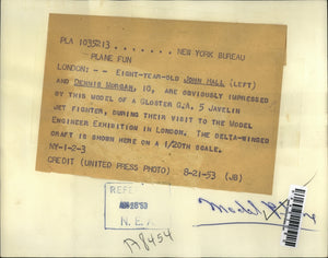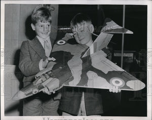 1953 Press Photo London John Hall & Dennis Mogan with model of Gloster Javelin