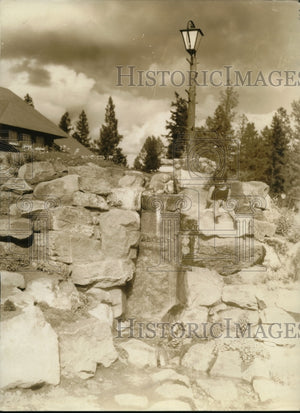 1928 Press Photo Young mistress from New York enjoying in front of Jasper Park