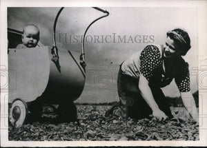 1949 Press Photo Skane Swedem Mrs Elsa Lindgren farmers wife weeds turnips