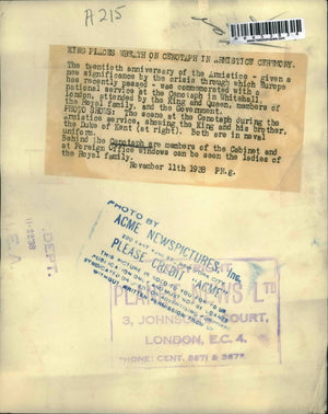 1938 Press Photo 20th Anniversary of Armistice King/Queen place wreath Cenotal