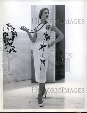 1958 Press Photo Model Wears Jeanne D'Arc White Chemise Rose Dress - nex56640