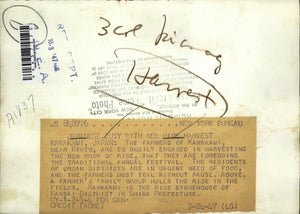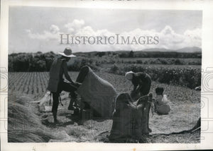 1947 Press Photo Kawakami Japan farmers with their rice harvest
