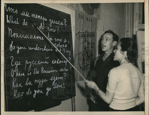 1948 Press Photo Berlin Germany K Rudzewski teaches GI Lt Rbt Howley Russian