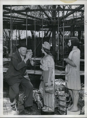1954 Press Photo Paul Parker taking pictures on a hand carved statues