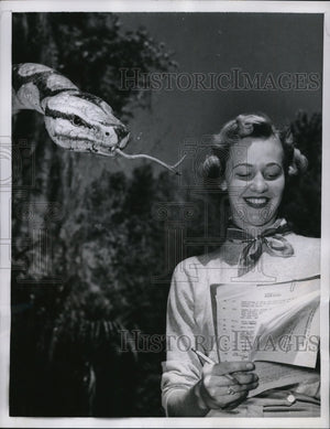 1956 Press Photo Longwood Fla Lois Eldridge TV script girl & python