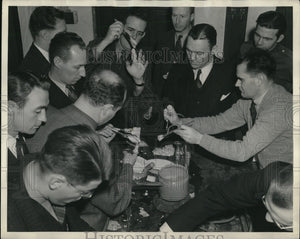 The modern policeman must know how to preserve valuable evidence for later presentation in the courts of law. Student police officers are shown in the Kemper Course at the Northwestern University Traffic Institute, Evanston, Illinois, receiving instruction in moulage, a method of taking casts for identification of facial features, foot prints and tire marks. The instructor is George Smith, an associate of Leonardo, Keeler, former director of the Northwestern University Scientific Crime Detection Laboratory.