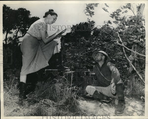 1938 Press Photo KABC Correspondent Doris McLain Interview Private W.L. Saunders