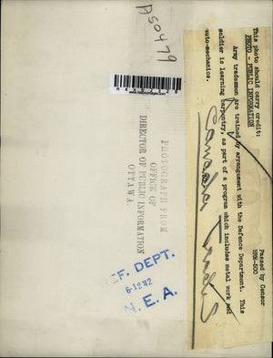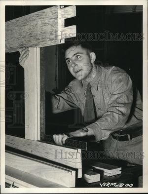 1942 Press Photo Army tradesman trained by Defense Dept in carpentry in Canada