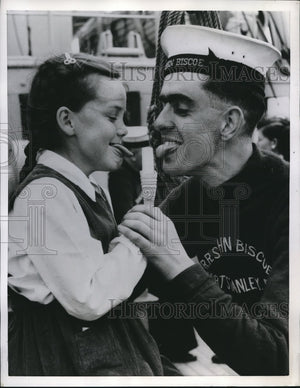 1956 Press Photo Seaman David Miller & his sister 10-year-old Pauline